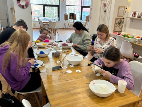 Подольское отделение МОРО СЖР организовало мастер-класс по росписи глиняной керамики для детей из семейного центра