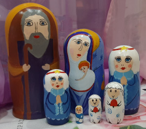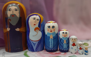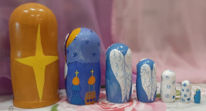 Здравствуйте,спасибо большое за такую хорошую возможность ,попробовать себя в виде художника,было очень трудно представить себе,как будут выглядеть свои собственные матрёшки.Мы сразу выбрали тему "Рождество Христово "!Дочь нарисовала все образы на бумаге ,после чего мы долго не решались перенести рисунок на матрёшки. Сейчас даже не верится ,что мы это сделали .