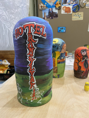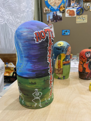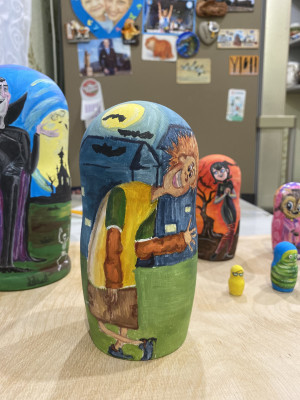 Создавала матрешки вмести с 13-летней дочерью Яной. Нарисовали героев одного из любимых мультиков.