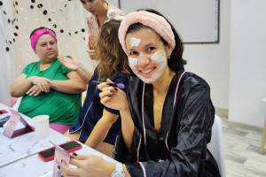 Бьюти-эксперты Татьяна Арзамаскина и Евгения Белякова устроили «Пижамную вечеринку» для особенных мам. Участницам рассказали о базовом уходе за кожей лица, подобрали косметику, а также сделали процедуры и массаж лица. Для мам также приготовили фотозону, а затем пригласили на фуршет.