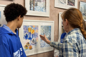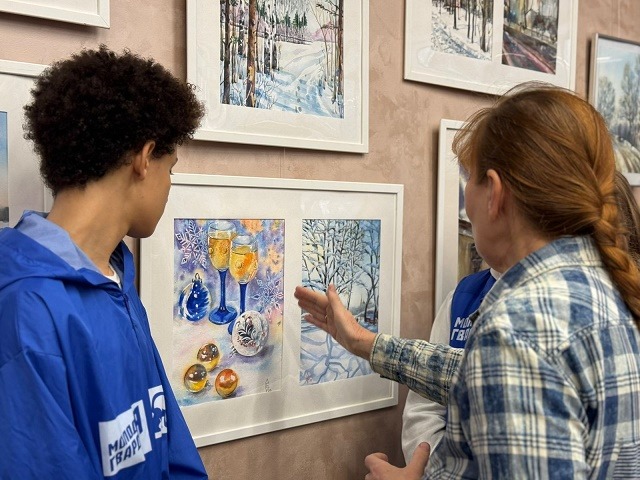 В рамках выставки акварели Елены Саллинен «На просторах русской зимы» в Ленинском округе провели экскурсию для активистов Молодой Гвардии.