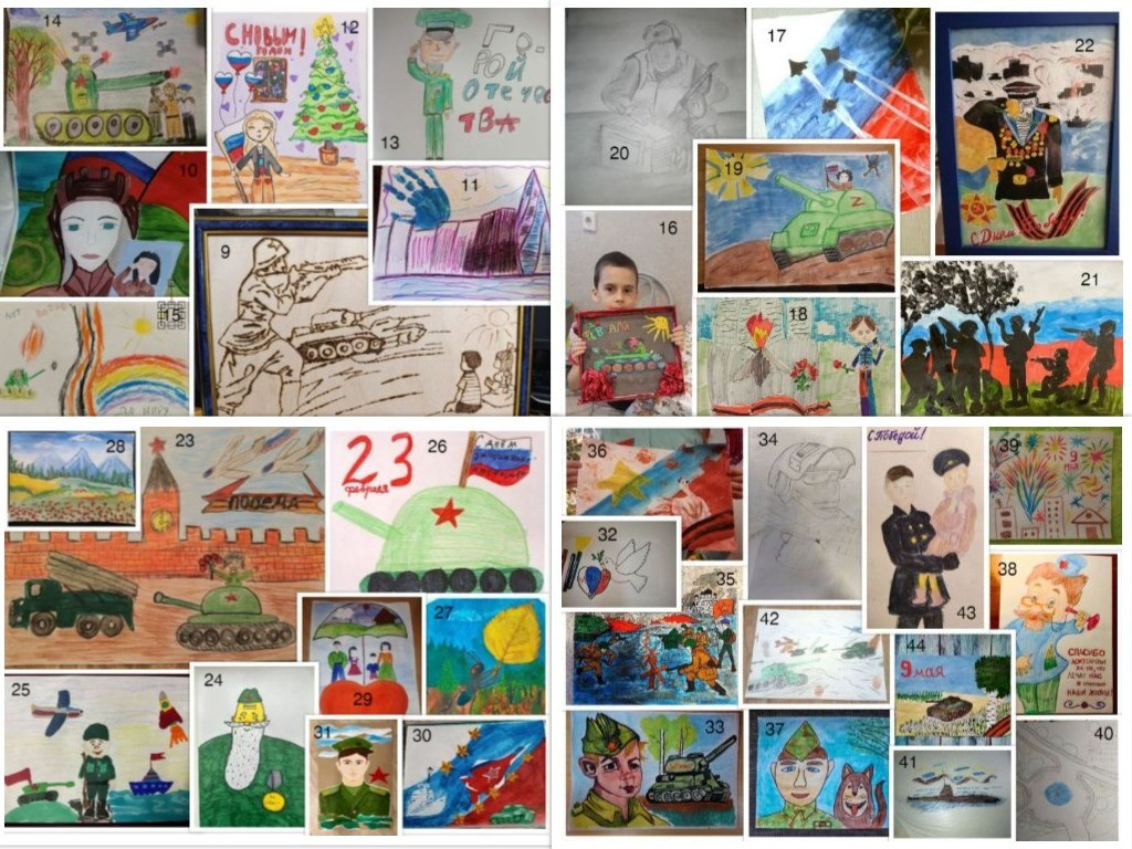 Ребята изобразили образы защитников Отечества, показали, как современных технологии помогают защитить границы, рассказали в карандаше и красках о своей семье и какой долг ее члены отдают Родине, а также о том, как они представляют себе мирную жизнь, созданную теми, кто её защищает.