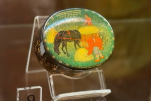 Совместная работа людей науки и искусства в ХХ веке привела к высочайшему взлету в развитии каждого промысла – на выставке дети увидели произведения холмогорской резной кости, вологодского кружева, лаковой миниатюры Палеха и Федоскино.