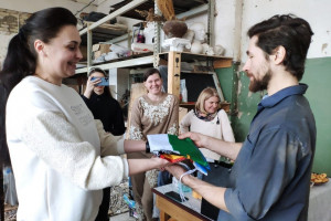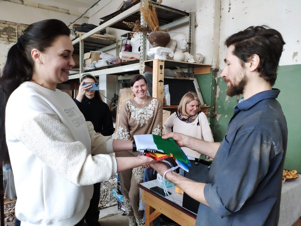 Корреспондент информационного портала Кашира.ру, активист Союза женщин России Ирина Пирогова выразила искреннюю благодарность Алексею, поздравив его с Днём защитника Отечества. Вместе с представительницами отделения Ирина вручила художнику символический подарок – флаг округа, как знак поддержки художника в сложной работе для родной Каширы.