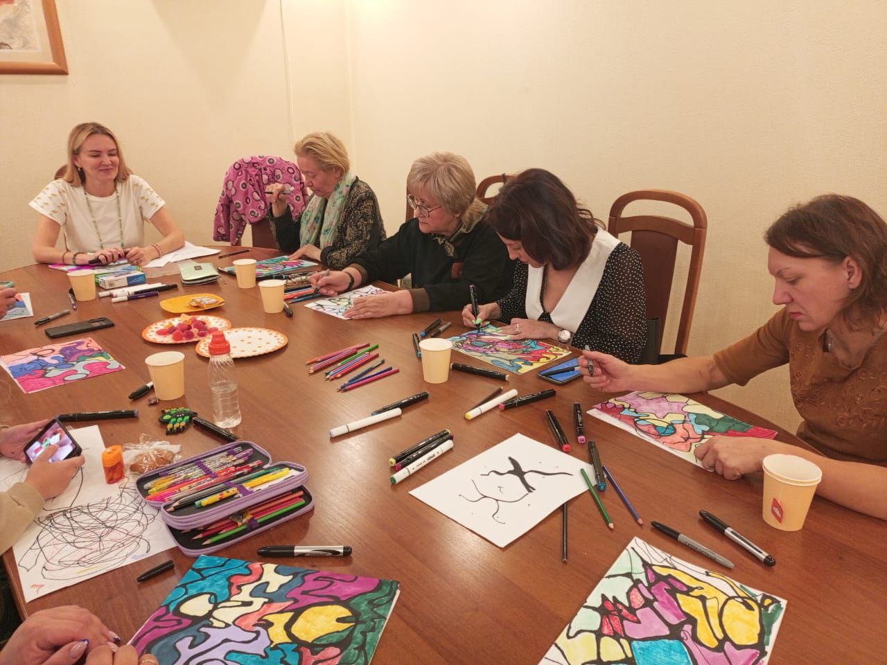 Ленинское отделение Союза женщин России организовало мастер-класс по нейрографике для снижения стресса. Занятие провела психолог ресурсного цента «Поможем!» в формате арт-терапии.