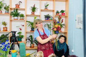 Алла давно занимается цветоводством и в увлекательной форме рассказала о принципах создания оригинальных букетов, акцентировав внимание на так называемых «мужских» цветах (гвоздики, розы, лилии, орхидеи, герберы и др) и их значении в жизни людей.