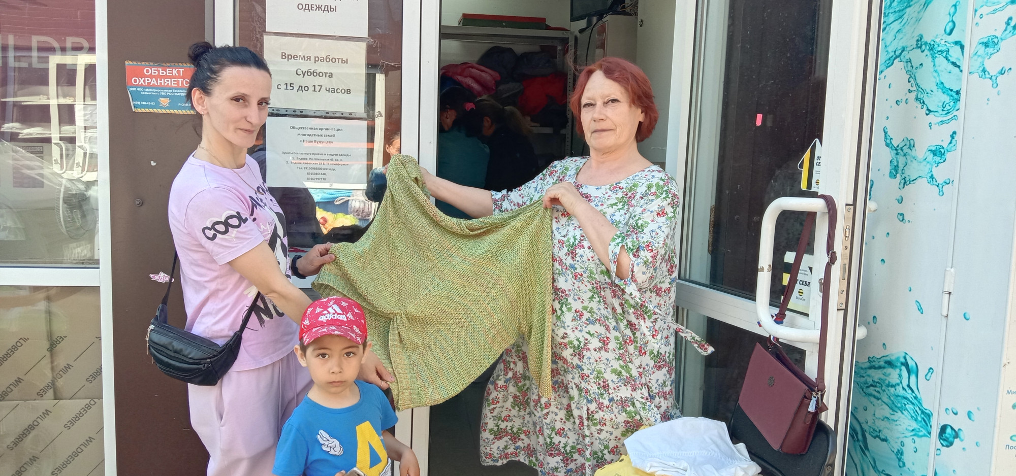 Созданный общественной организацией «Наше будущее», благотворительный пункт существует уже более года, и любой житель Ленинского округа может как принести туда свою одежду, так и воспользоваться уже принесенными вещами. Одежда довольно быстро расходится по многодетным семьям, также вещи отвозят и в другие округа Московской области и даже за её пределы.