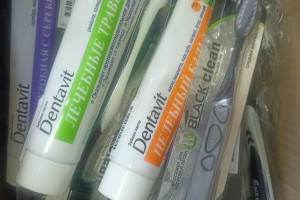 Участницы Подольского отделения передали в Центр медицинские препараты, хозяйственно-бытовые средства и предметы личной гигиены, а также сладости и паёк для солдат.