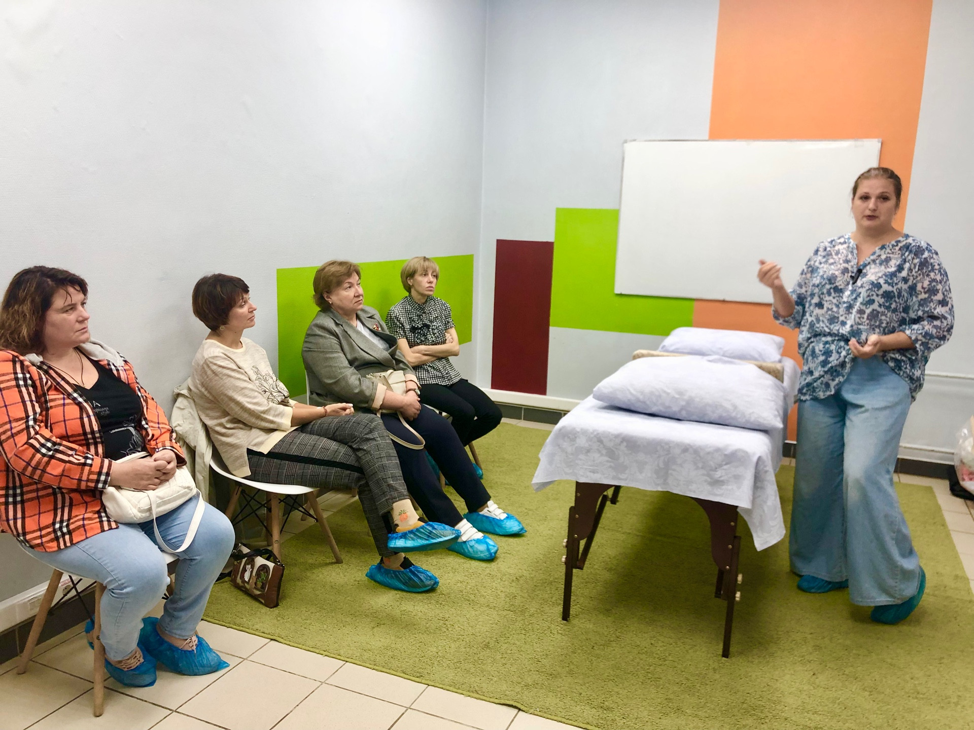 Председатель местного отделения Марина Ивановская вместе с соматическим психологом Надеждой Ульяновой рассказали союзницам о новом методе телесно-ориентированной психотерапии - биодинамической фасциальной модуляции.