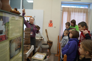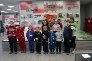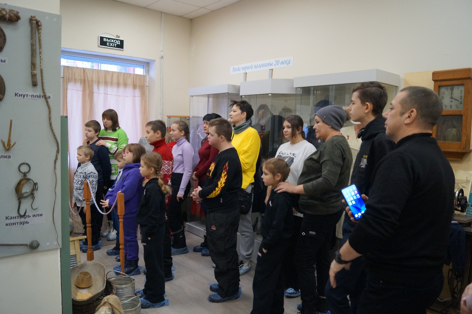 Ребятам провели интерактивную экскурсию по залам музея, познакомили с бытом и обычаями предков. В русской избе ребята своими глазами увидели и потрогали старинную посуду и предметы утвари – утюги, ухваты, веретено и прялку – а еще узнали, что для глажки в старину использовали скалку и рубель.