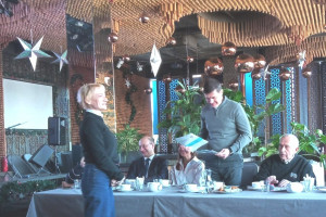 Главный врач медицинского центра «Марусино», активистка Люберецкого отделения Союза женщин России Наталья Феоктистова представила свежий выпуск журнала «Здоровый округ – Люберецкий округ» на встрече с главой Люберец Владимиром Волковым по случаю Дня российской печати.