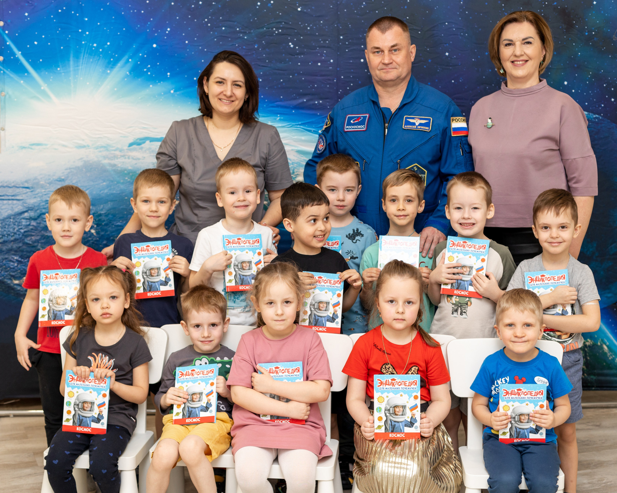 Алексей Николаевич, в свою очередь, подарил ребятам энциклопедии про космос с личным автографом.