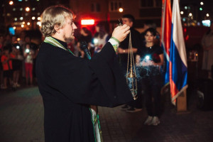 После минуты молчания священнослужитель отслужил панихиду по погибшим жертвам в Беслане.
